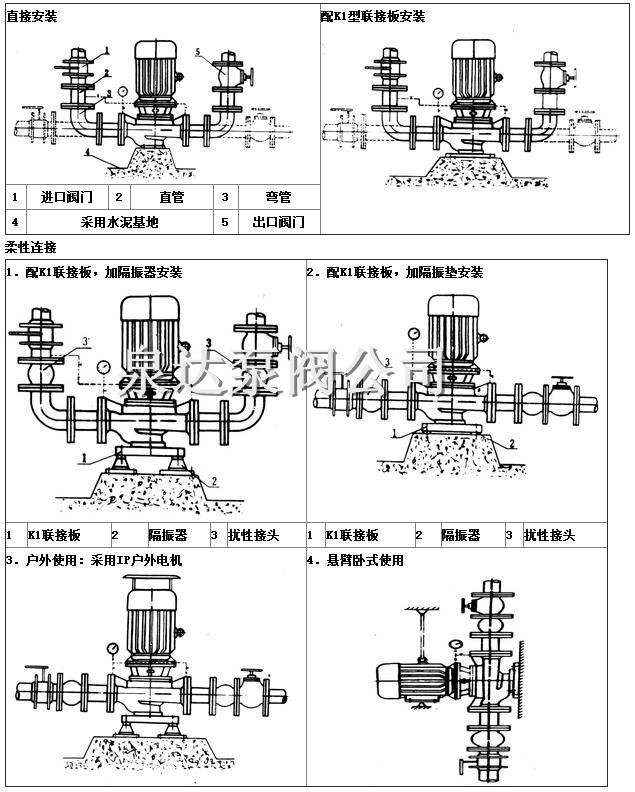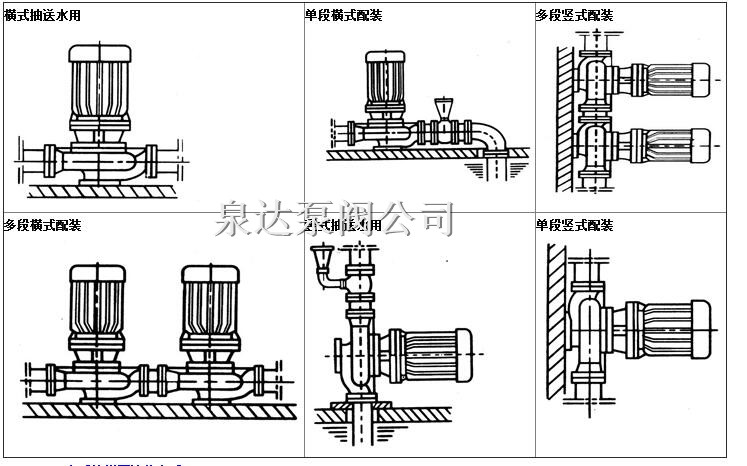 6.管道泵可根據(jù)管路布置的要求采用泵的豎式和橫式安裝。