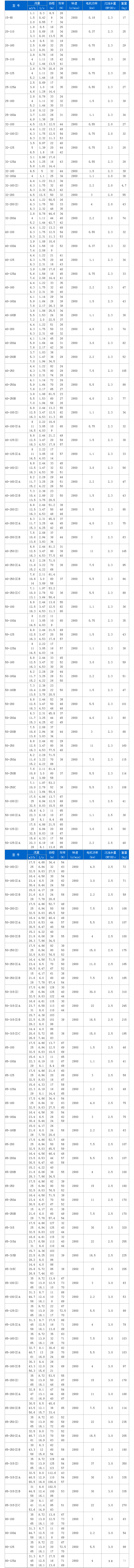 ISG管道離心泵性能參數(shù)表: